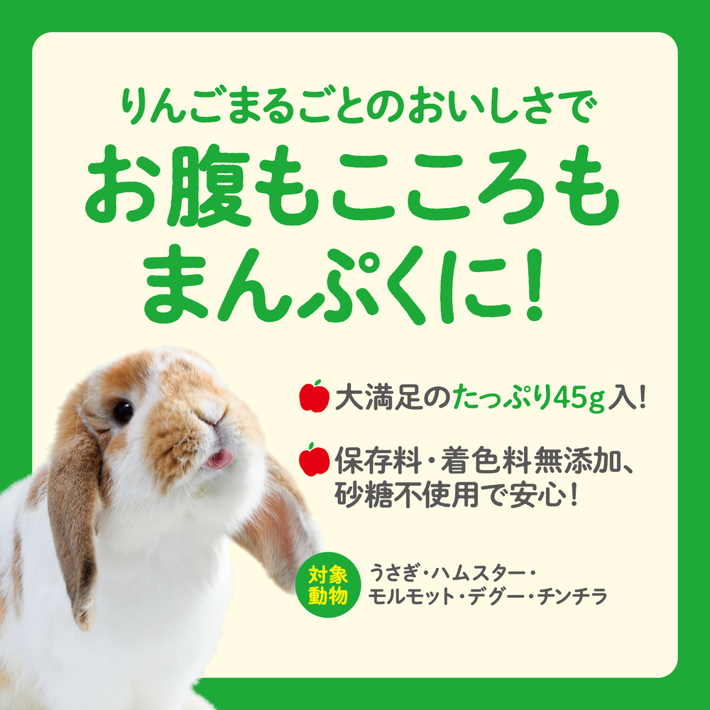 トップ > 小動物用品 > 牧草/ペレット/副食 > うさぎ用副食 > さくっとまんぷくりんごフリーズドライ 45g