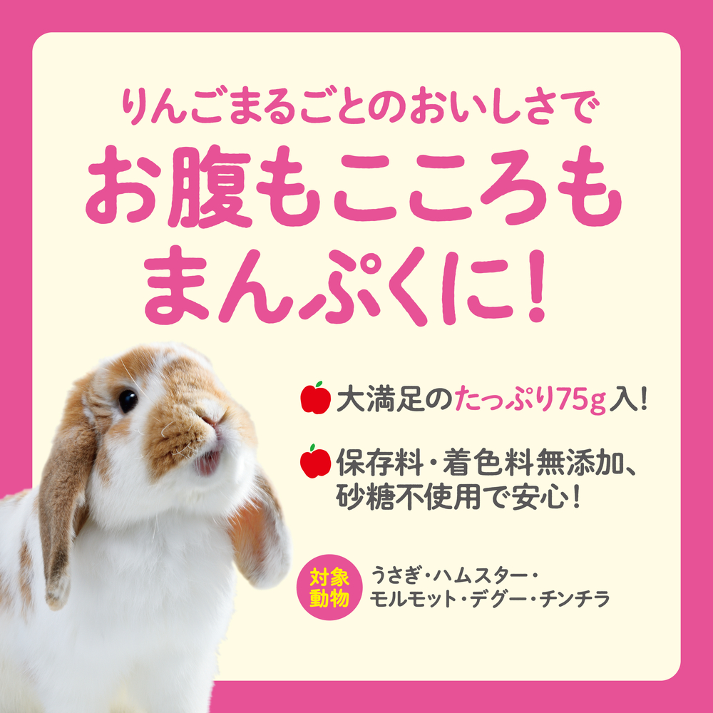 トップ > 小動物用品 > 牧草/ペレット/副食 > うさぎ用副食 > パリッとまんぷくりんごエアドライ 75g