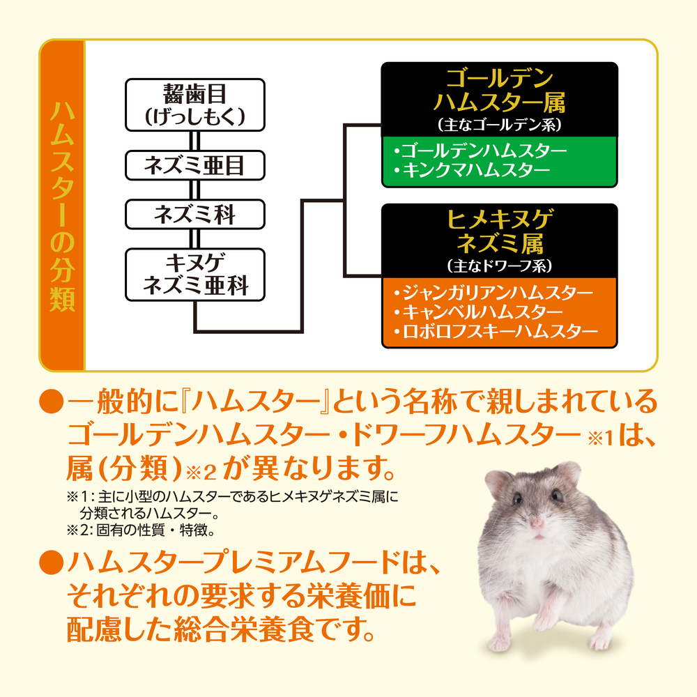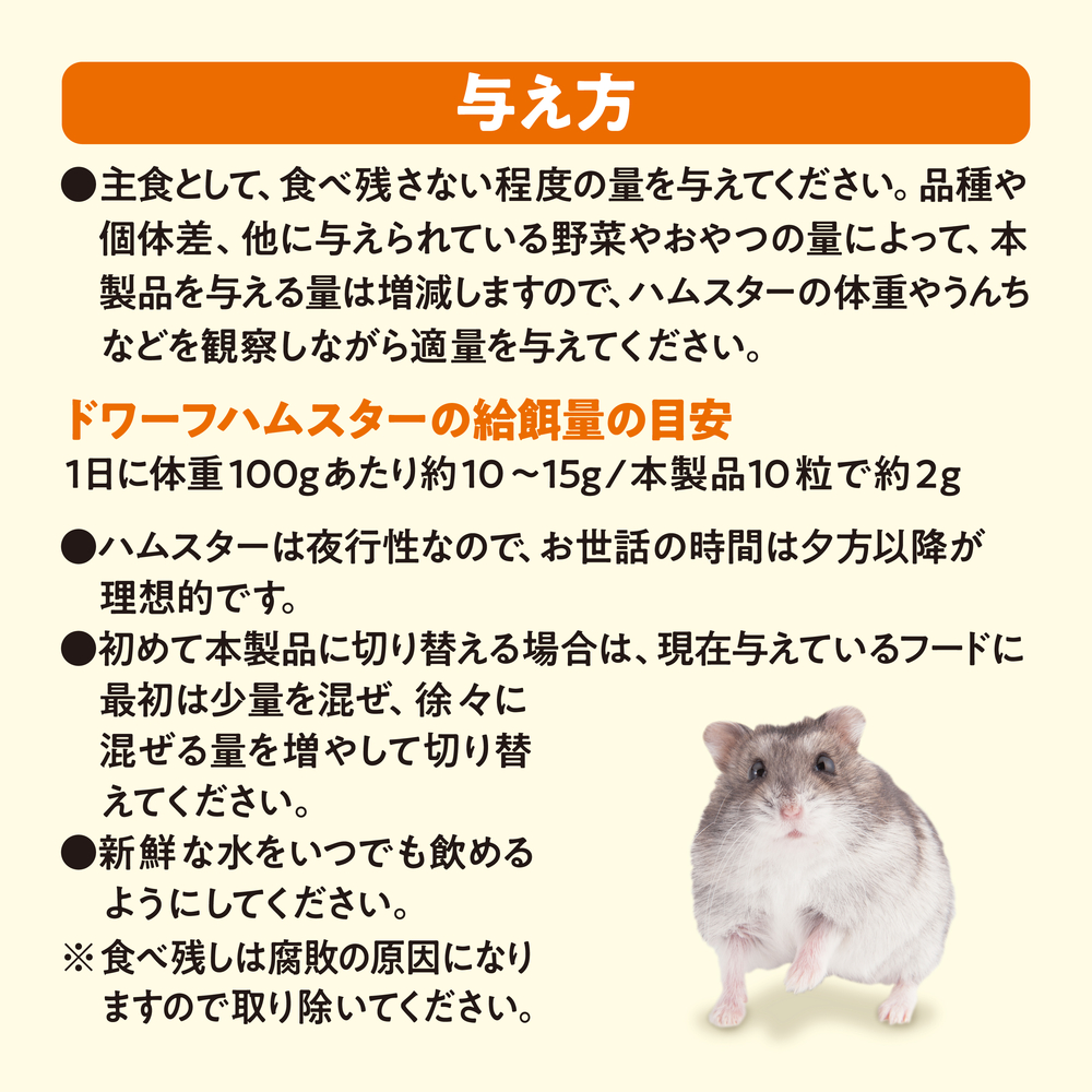 トップ > 小動物用品 > 牧草/ペレット/副食 > ハムスター用ペレットフード > ハムスタープレミアムフード ドワーフ専用400g