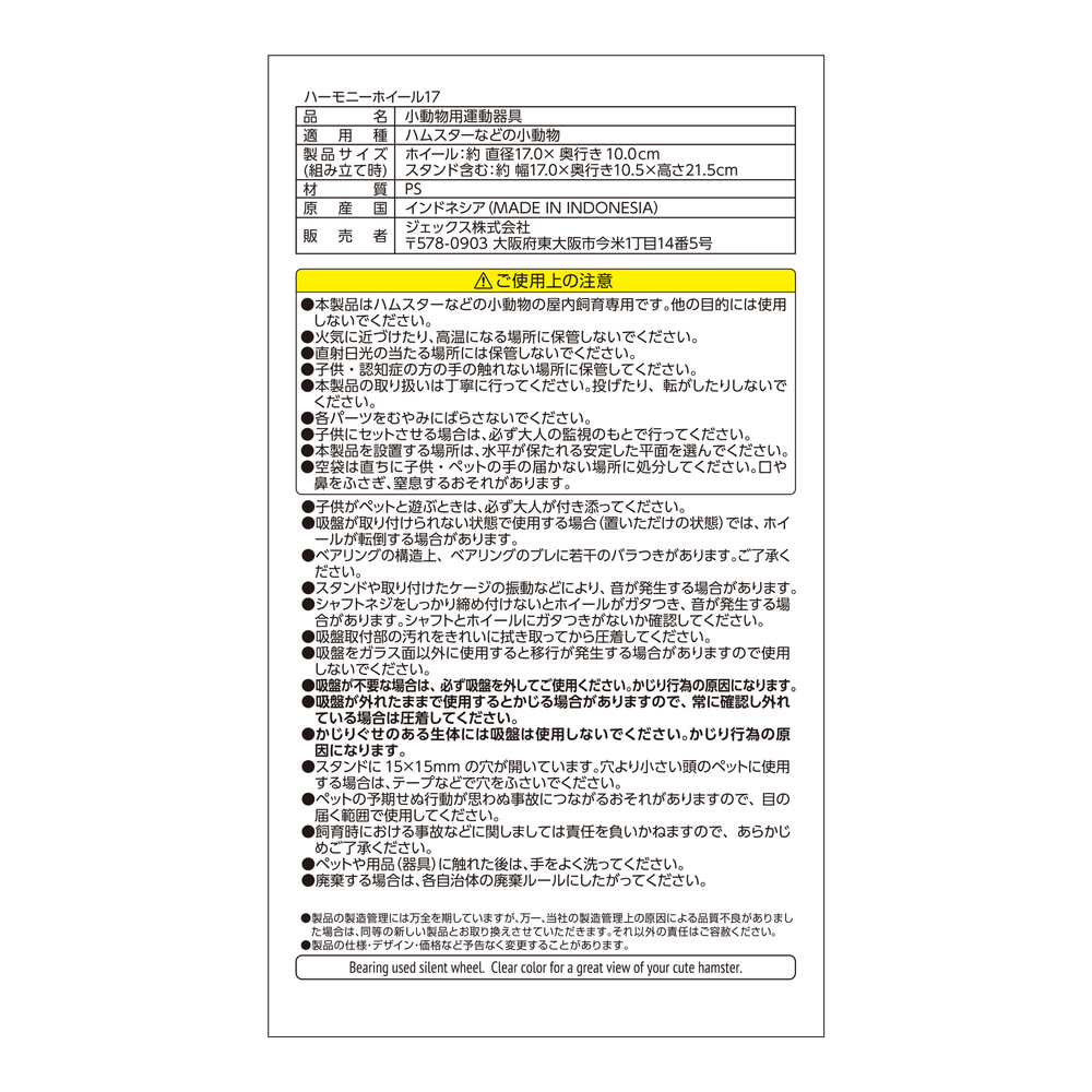 トップ > 小動物用品 > ケージ/サークル/周辺用品 > ハムスター用ケージ・周辺用品 > ハーモニーホイール17【ゴールデンにオススメ17㎝】