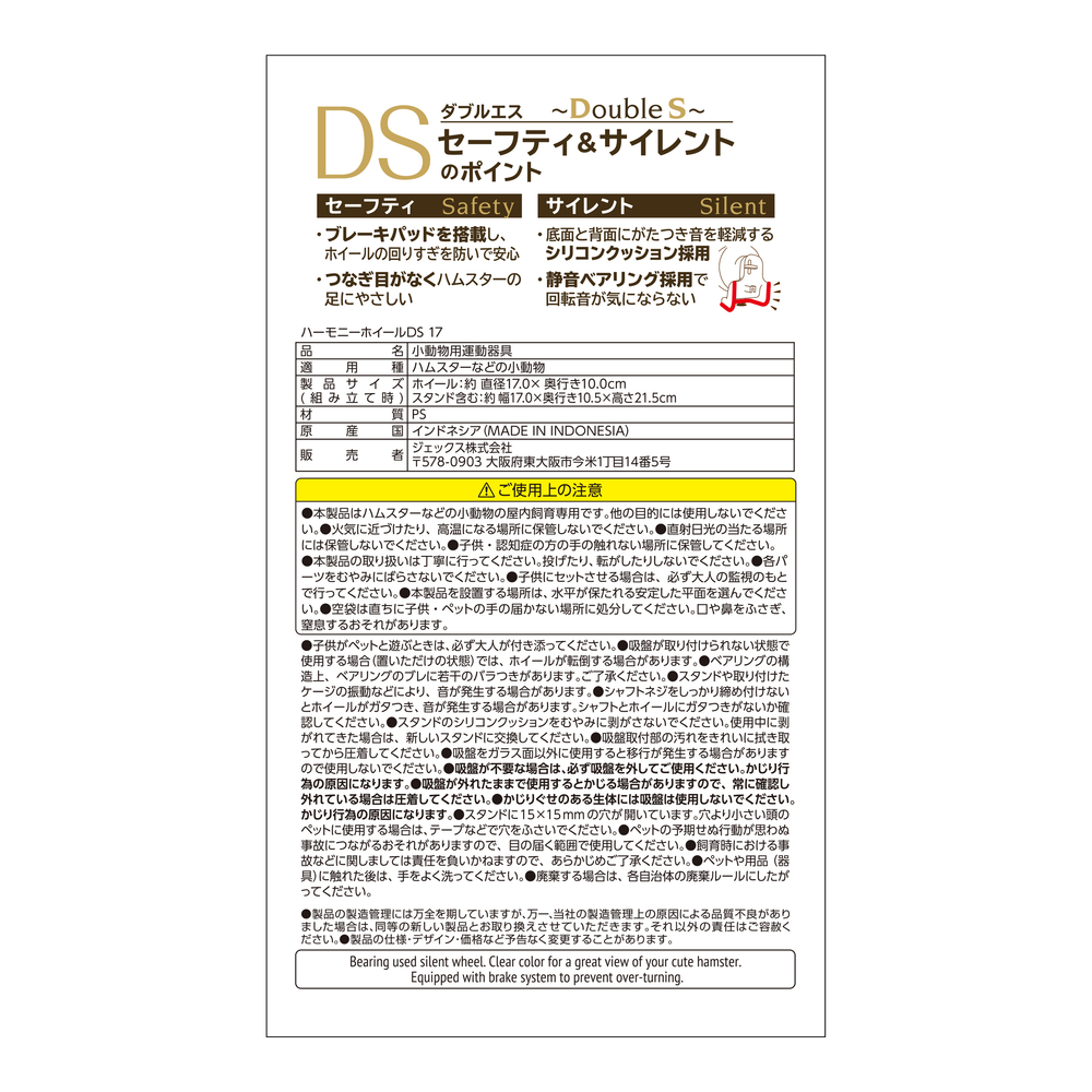 トップ > 小動物用品 > ケージ/サークル/周辺用品 > ハムスター用ケージ・周辺用品 > ハーモニーホイールDS17【セーフティ&サイレント】