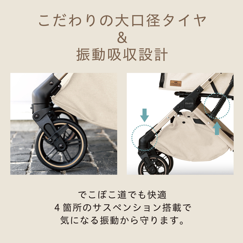 【こだわりタイヤ】大口径タイヤででこぼこ道でも快適な乗り心地&押し心地