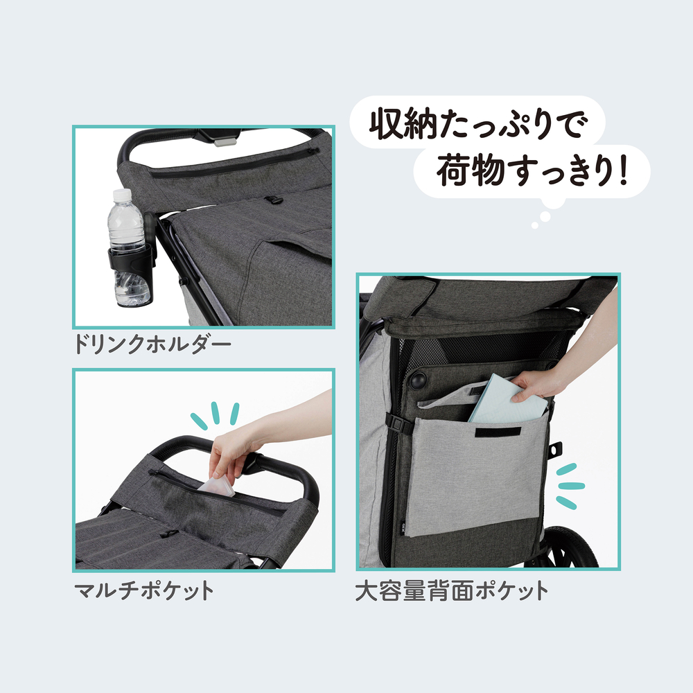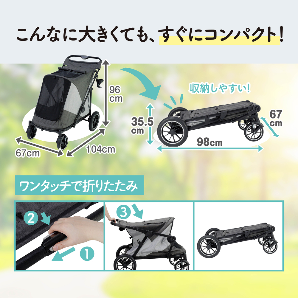 【使い勝手の良い便利機能】ワンタッチでコンパクトに折りたためるほか、荷物を整理できるマルチポケットや背面ポケット、最大4本まで追加可能な飛び出し防止リード(標準で2本付属)など、利便性に優れた機能が備わっています。