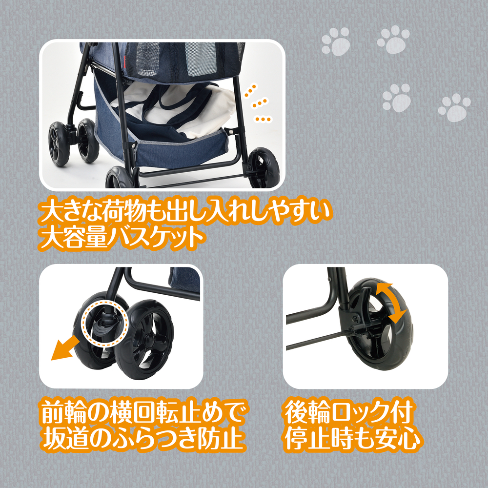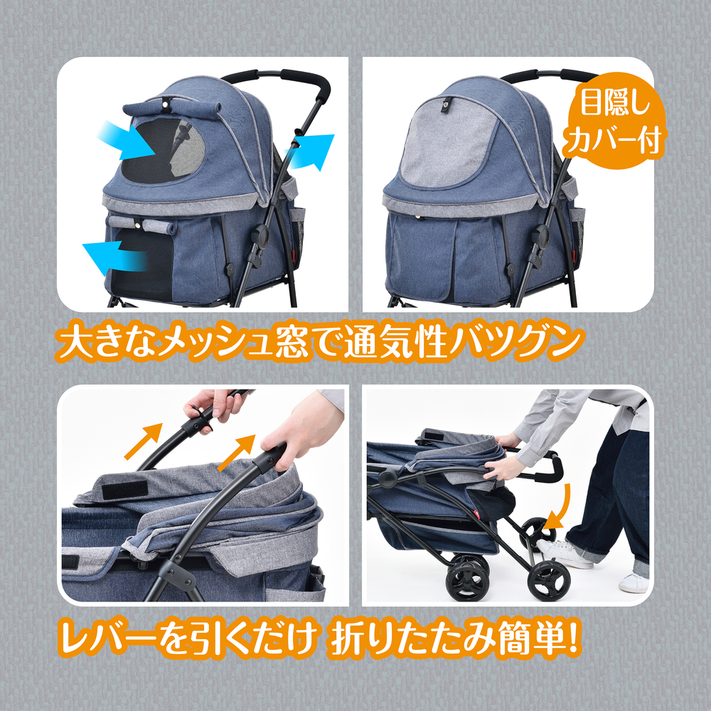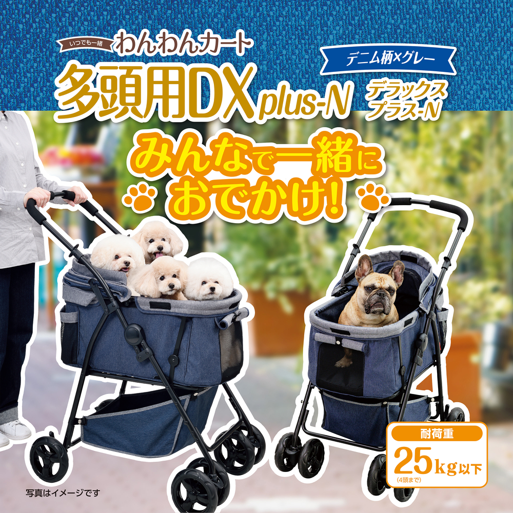 わんわんカート多頭用DXplus-N デニム柄×グレー