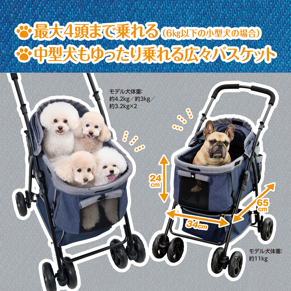 6kg以下の小型犬最大4頭(耐荷重:25kg)まで対応。
