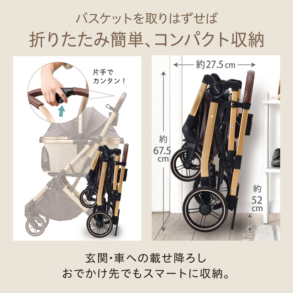 折りたたみサイズ:約幅52×奥行27.5×高さ67.5cm