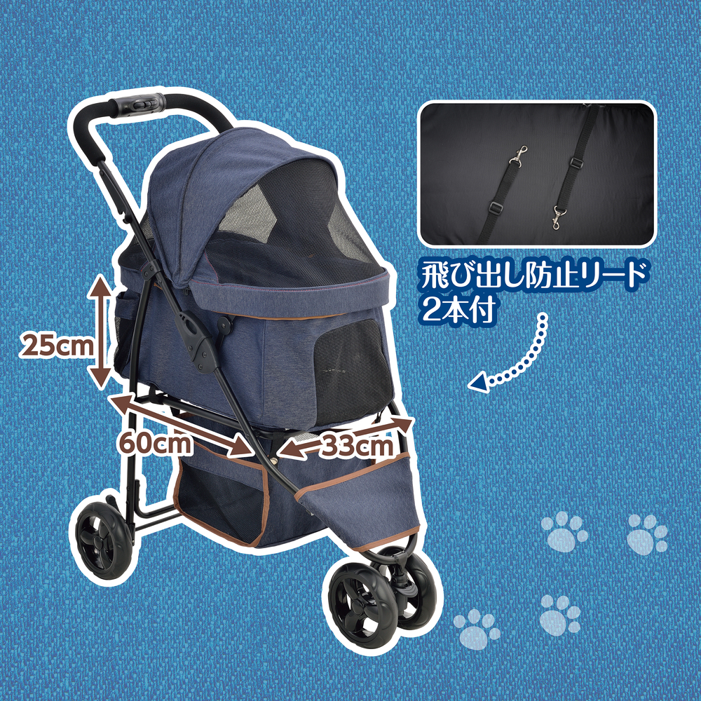 両対面式カバー・・・カバーが後方にも開けられるので、カートを押しながら愛犬の様子を確認できる! 後輪はロック付で停止時でも安心