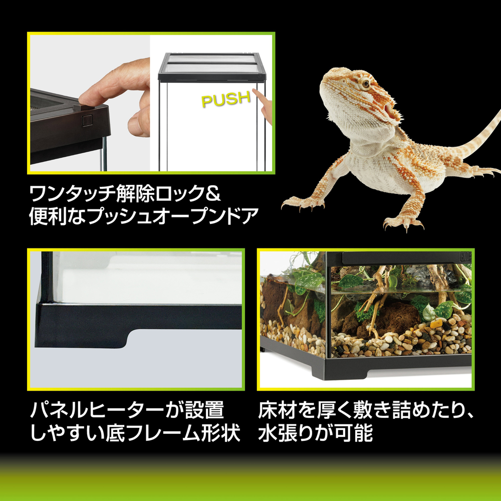 ヨーロッパ仕様の機能的でデザイン性に優れた爬虫類・両生類飼育用ケージ。