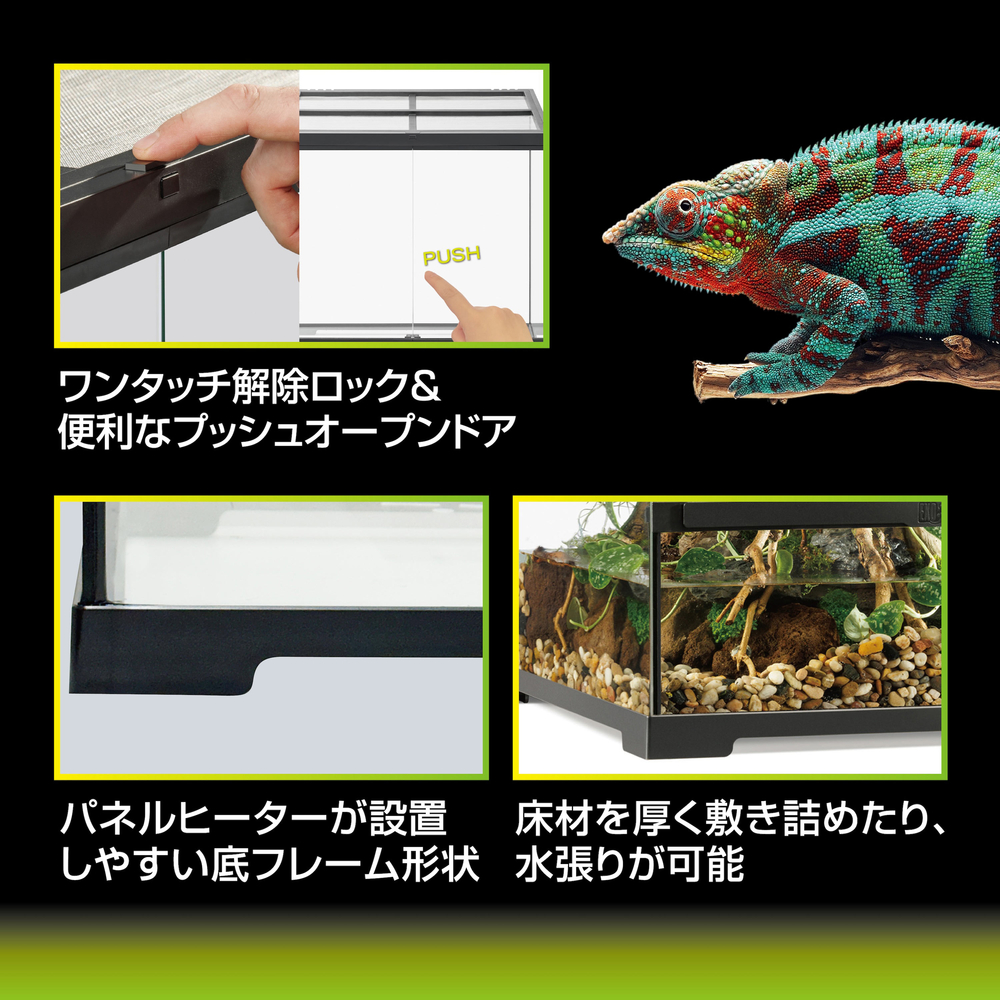 ヨーロッパ仕様の機能的でデザイン性に優れた爬虫類・両生類飼育用ケージ。