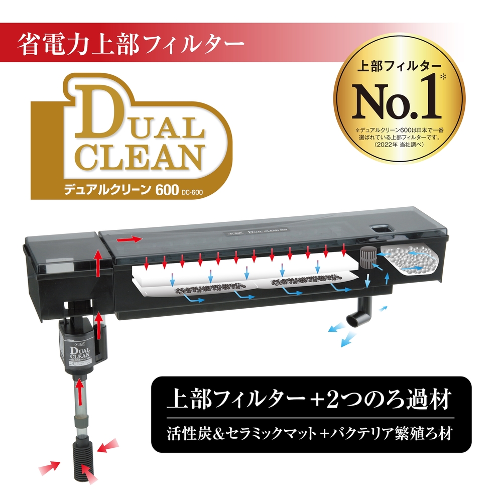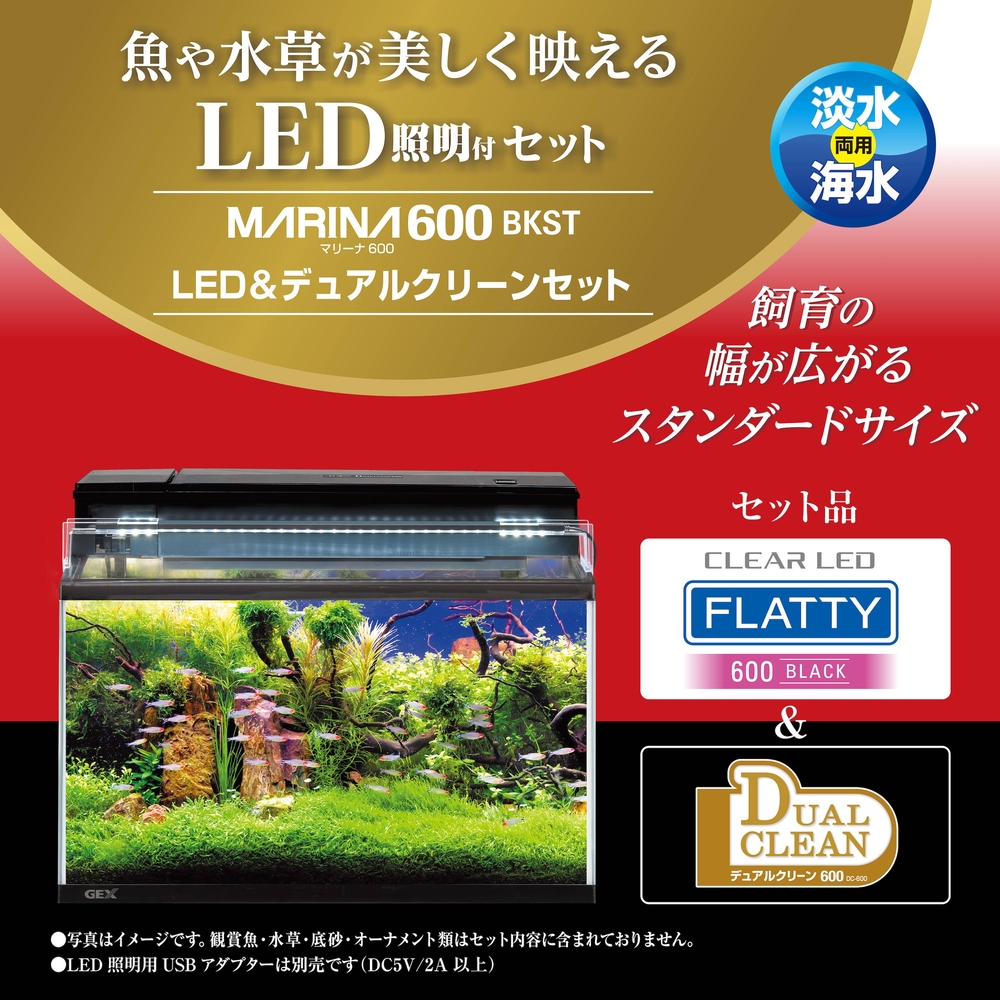 トップ > アクアリウム用品 > 水槽/水槽セット/水槽台 > フレーム水槽セット(マリーナ水槽セット 幅45cm以上) > マリーナ600BKST LED&デュアルクリーンセット 水槽2年保証