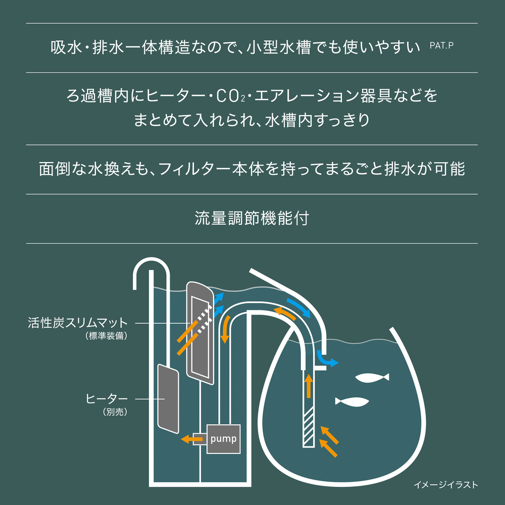 | 適合水槽 | 水容量15L以下の水槽、水槽の高さ16~28cm |