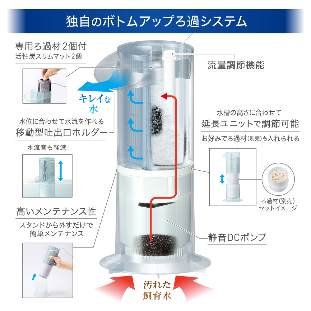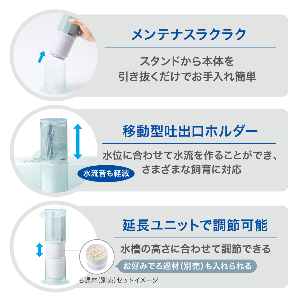 | 適合水槽 | 水容量57L以下の水槽、水槽内高さ27cm以上 |