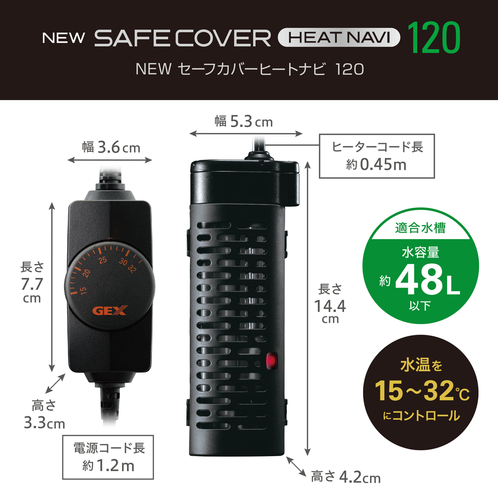トップ > アクアリウム用品 > 水槽用ヒーター・クーラー > 温度調整式ヒーター(一体型/セパレート) > NEW セーフカバー ヒートナビ 120