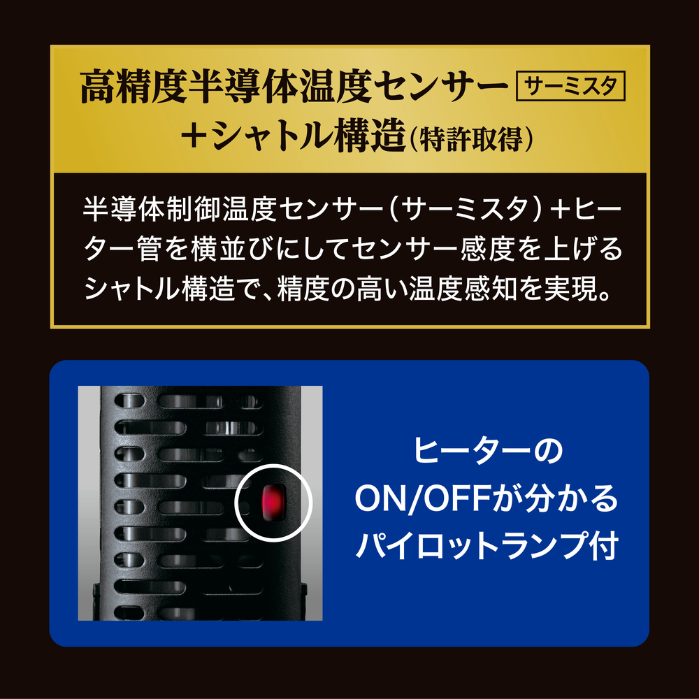 | ヒーターサイズ | 約幅5.3×奥行4.2×高さ14.4cm |