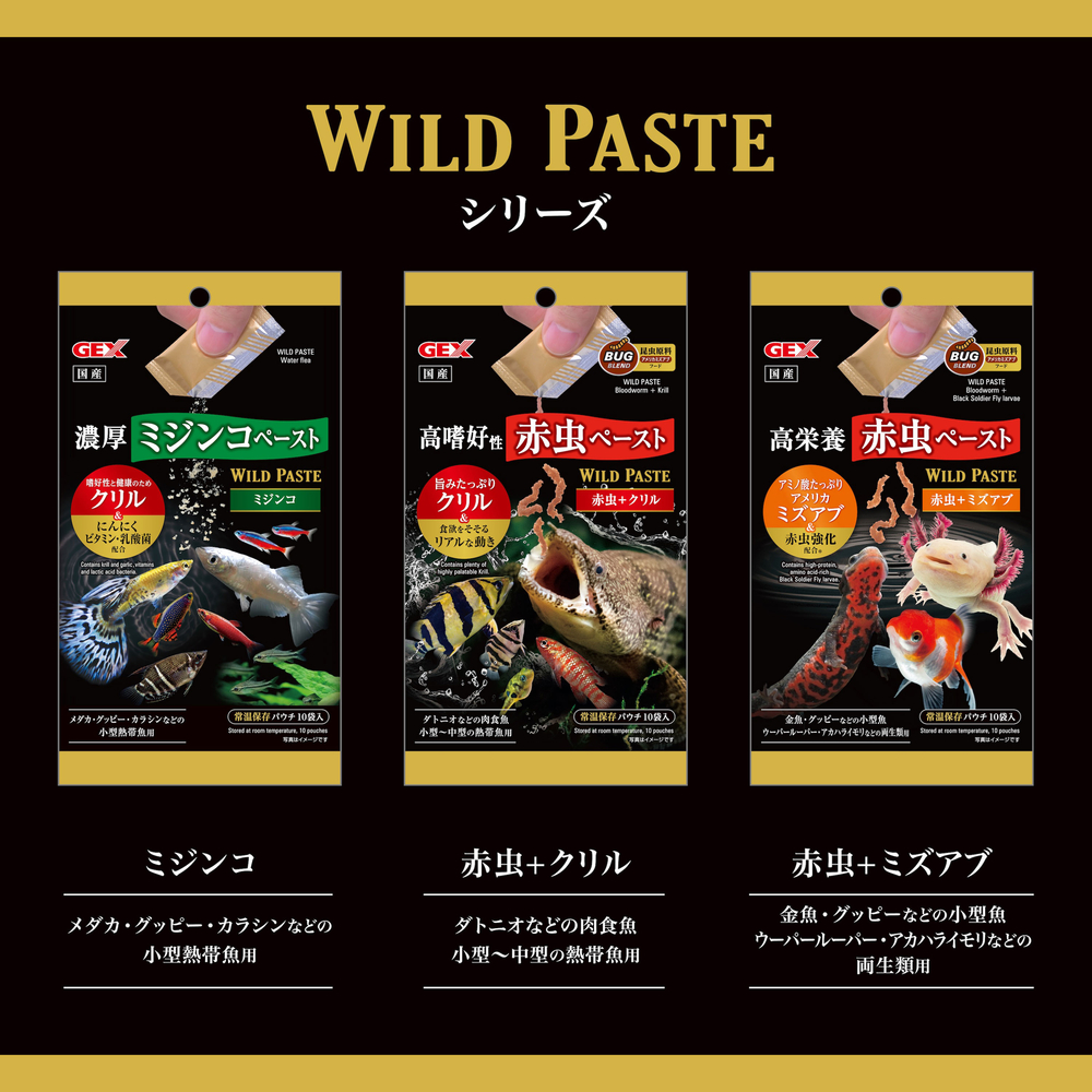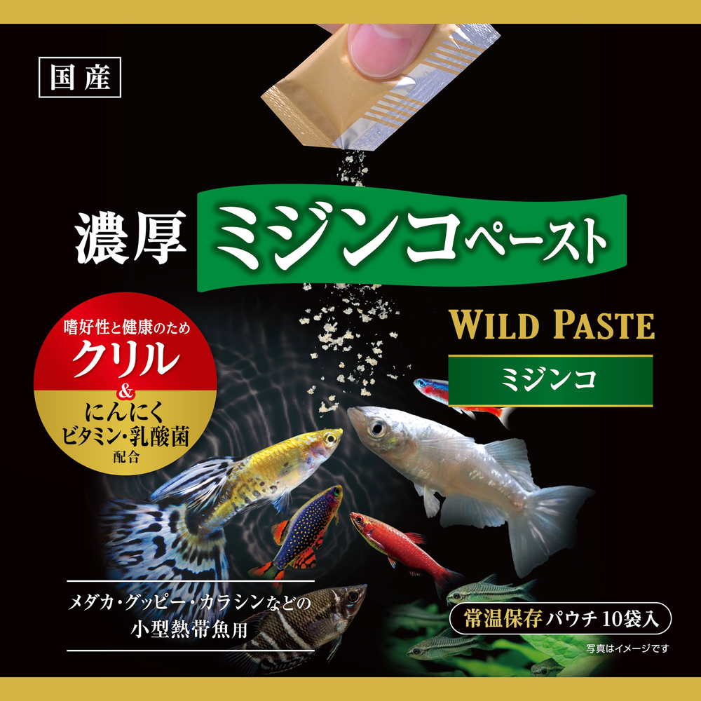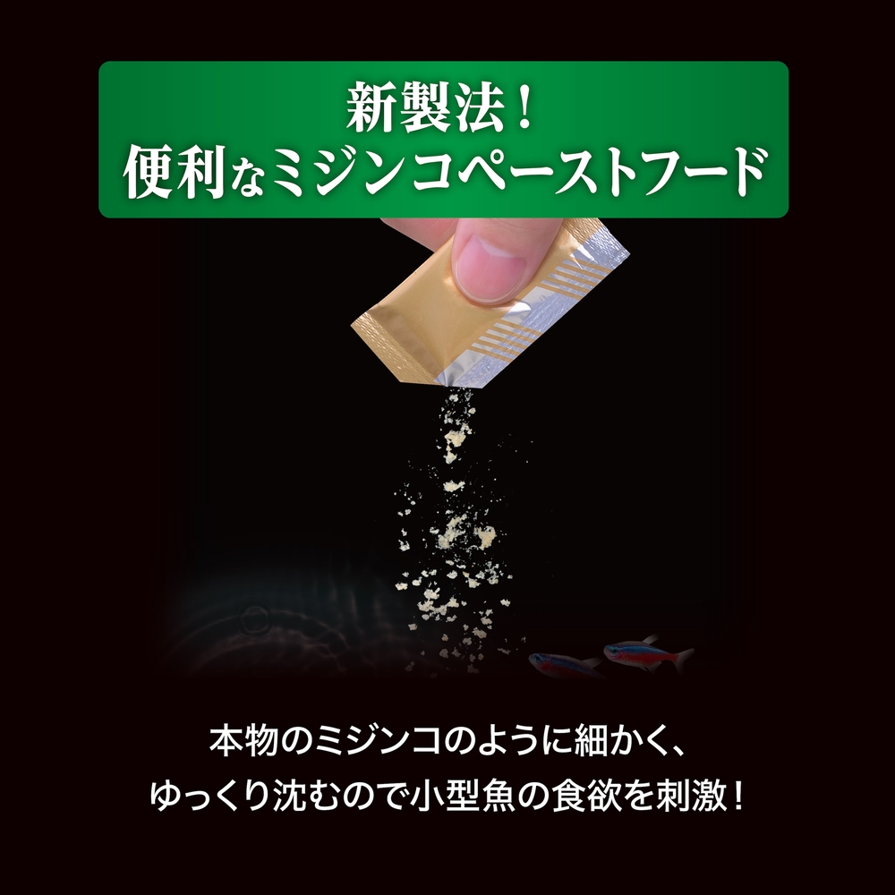 【新製法!便利なミジンコペーストフード】観賞魚の餌として定番のミジンコをたっぷり使用した、パウチから絞り出すだけで簡単に給餌できるペーストフードです。