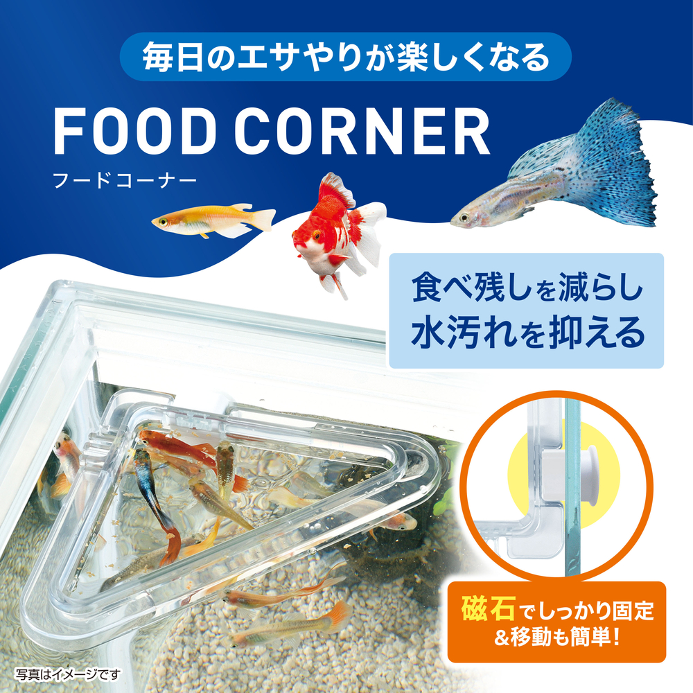 毎日のエサやりが楽しくなる!強力磁石で水槽のコーナーにしっかり固定!水流でフードが広がらないので食べ残しを減らし、水汚れを抑えます。