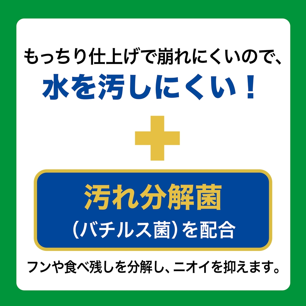 【汚れ分解菌(バチルス菌)配合】:フンや食べ残しなどの汚れを分解し、ニオイを抑制!