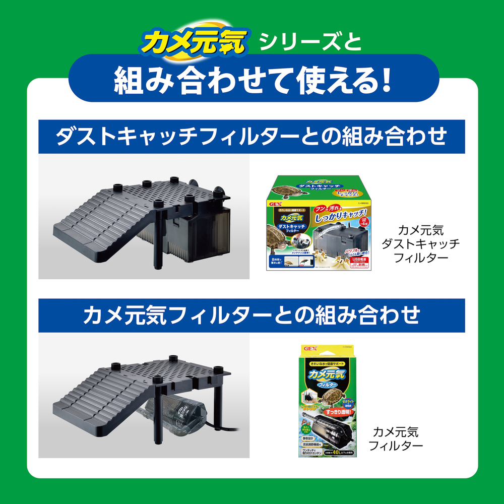 【すぐれた拡張性】複数購入することで連結して拡張でき、大きなカメや水槽にも対応可能!別売の「カメ元気 ダストキャッチフィルター」と接続して使用することができます。
