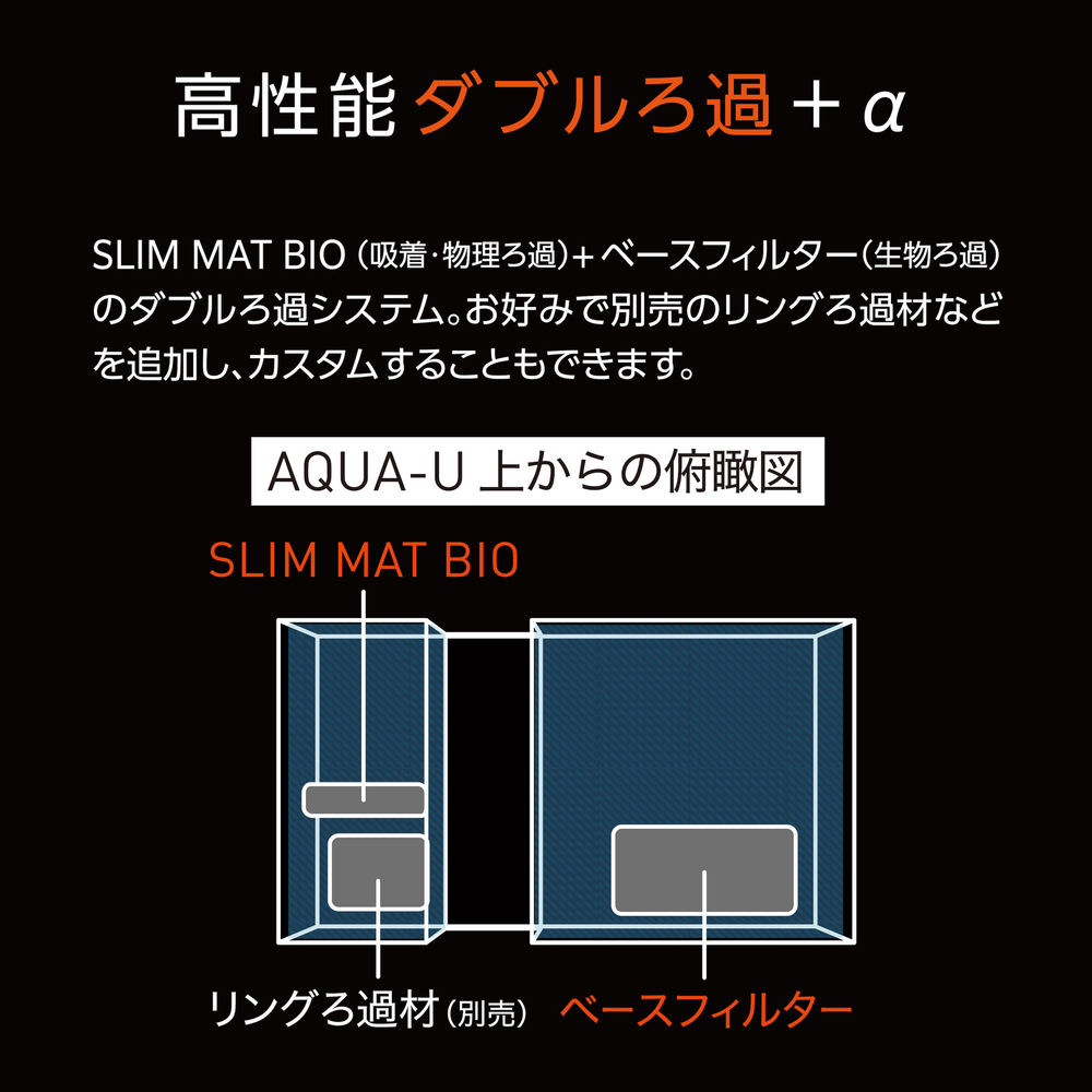 ・Ga SLIM MAT BIO(吸着・物理ろ過)+ベースフィルター(生物ろ過)を実現。