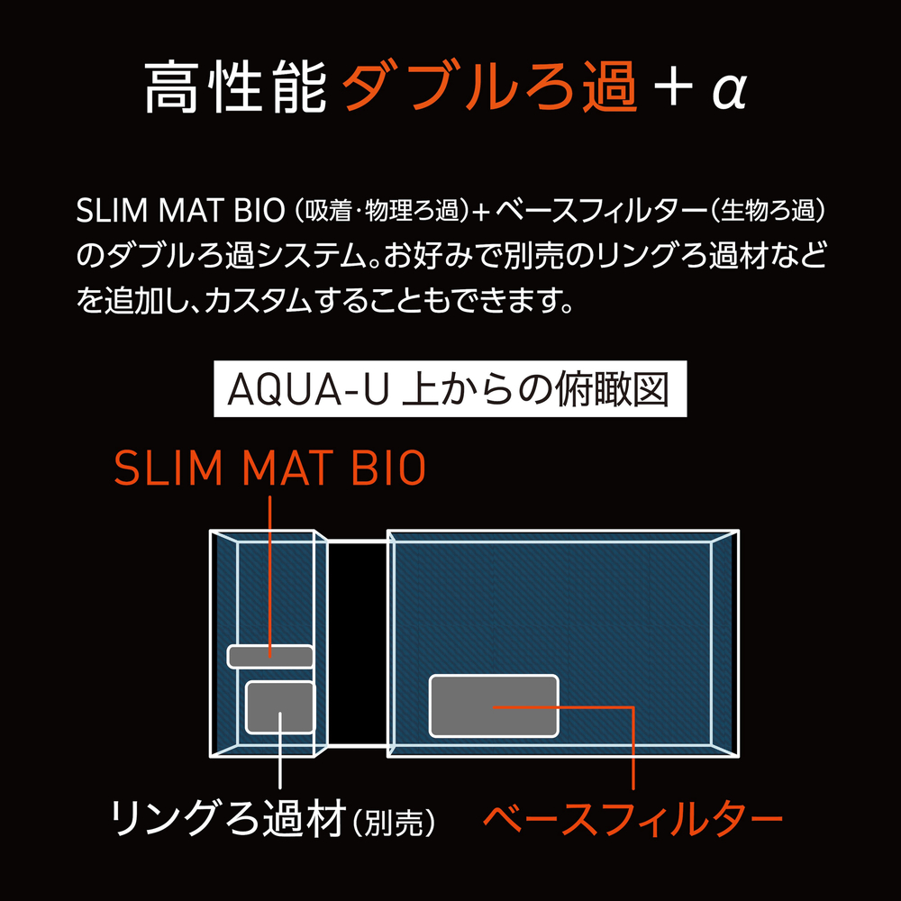 ・Ga SLIM MAT BIO(吸着・物理ろ過)+ベースフィルター(生物ろ過)を実現。