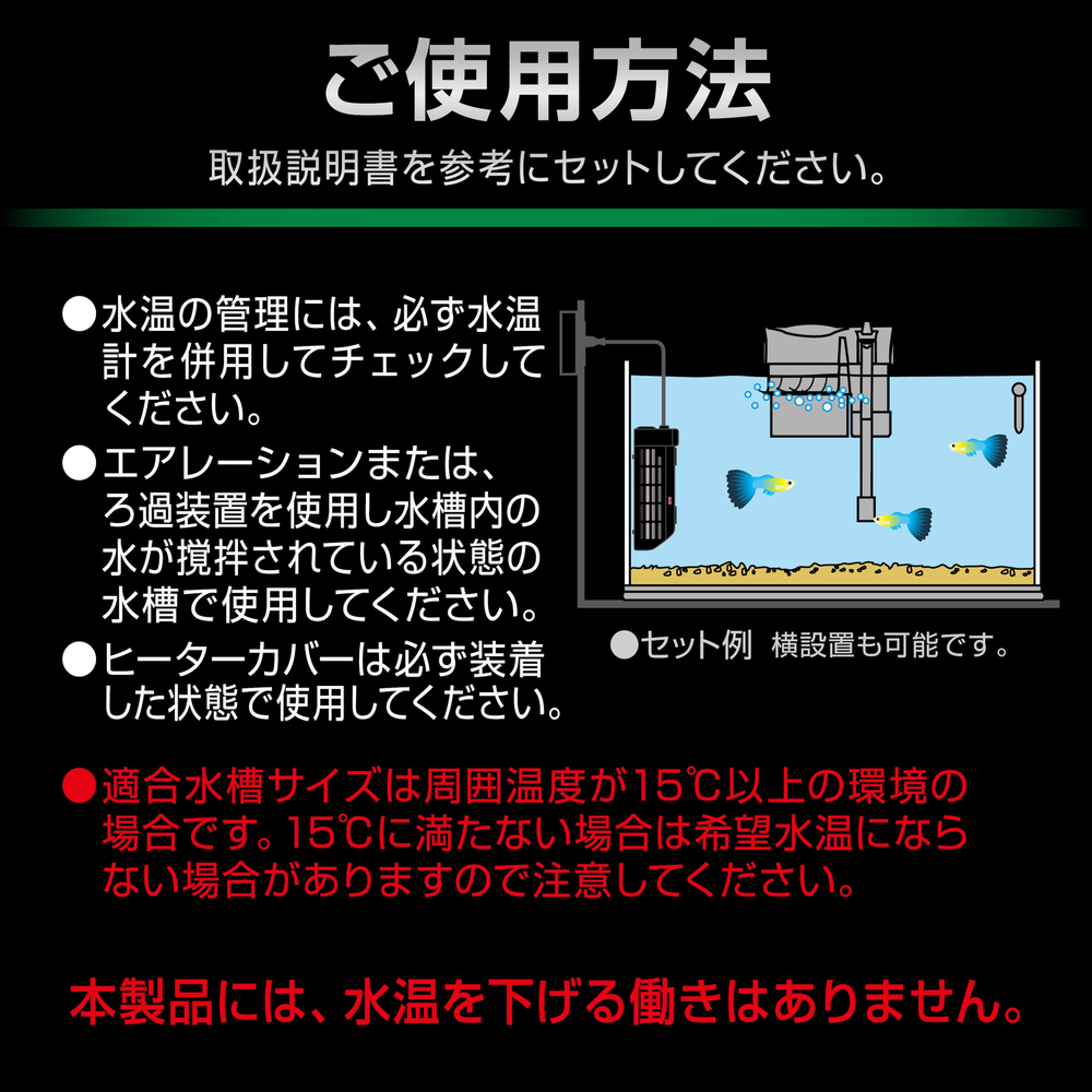 | 適合水槽 | 約48L以下(幅45cm以下水槽) |