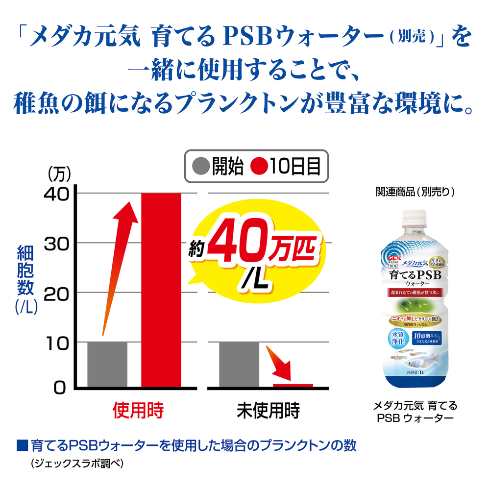 ・水につけて1~2日後からプランクトンが発生しはじめるため、稚魚が生まれる少し前から容器に入れるとより効果的です。※プランクトンは肉眼では見えません。